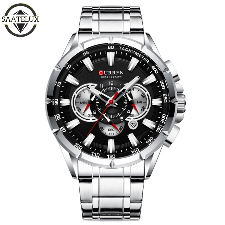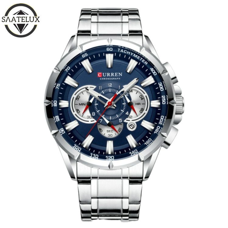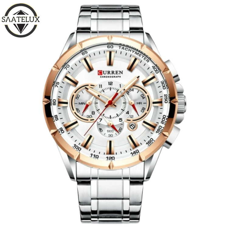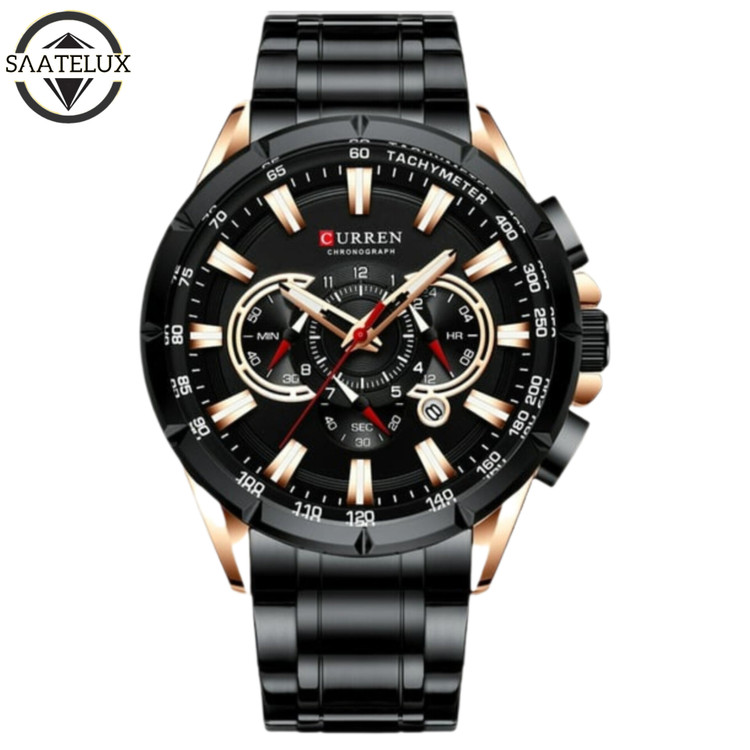 سه موتور فعال کرنوگراف. دارای روز شمار. بند و قاب استیل رنگ ثابت. شیشه کریستال ضدخش. ضد آب قوی تا عمق سه متر. نمایش ساعت به صورت AM.PM . قطر صفحه ۴۶ میلیمتر . شب نما . قفل کلیپسی فشاری حک شده. یکسال گارانتی موتور