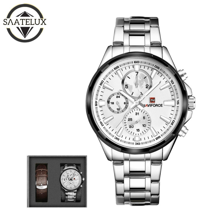 به همراه جعبه اصلی ، پاکت ناوی فورس و یک بند چرمی اضافه